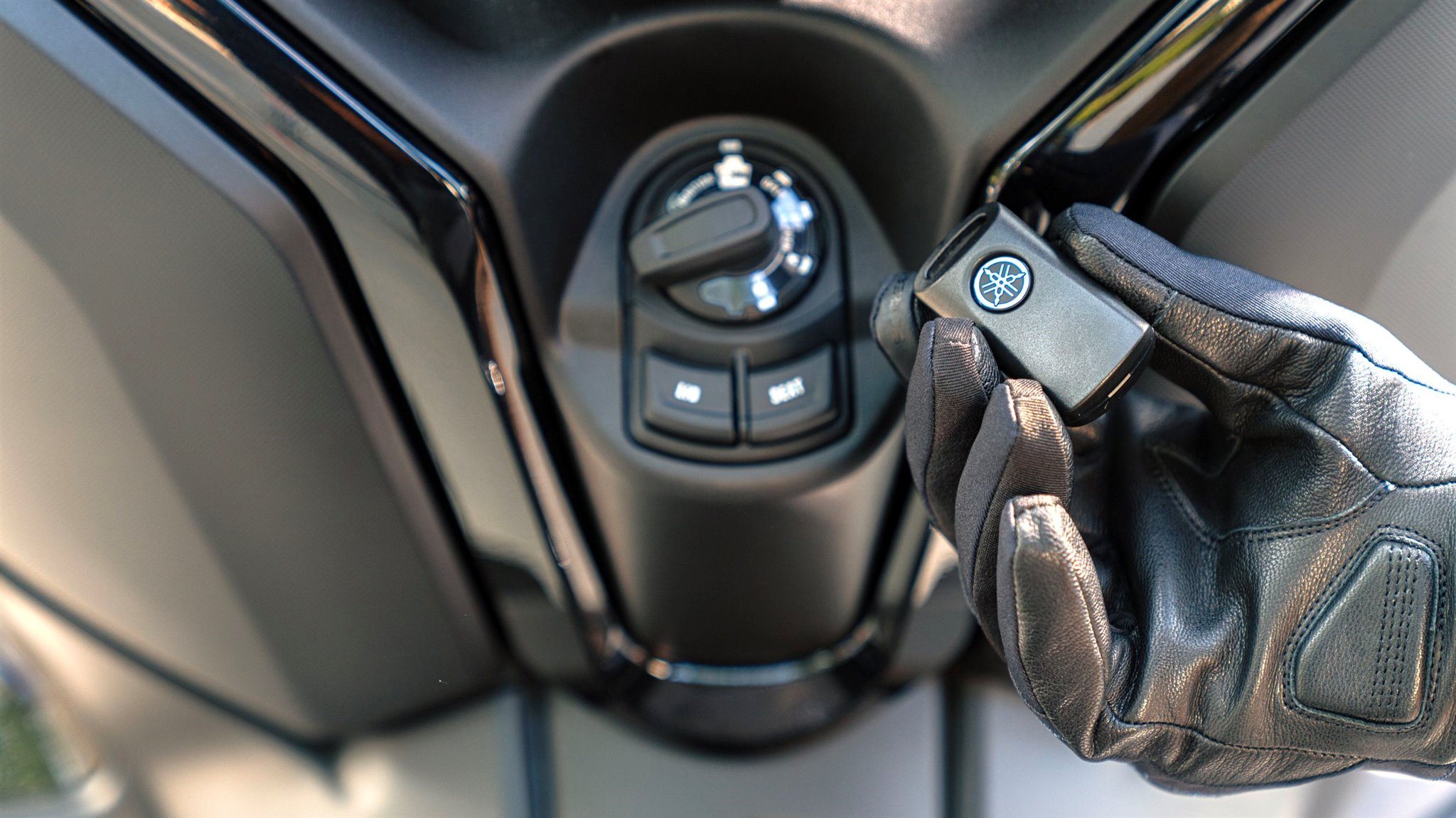 Ein Start-Stopp-System verbessert die Kraftstoffeffizienz und minimiert die Emissionen und für die Stromversorgung deiner Geräte gibt es ein USB-Typ-C-Ladegerät. Das große Staufach unter der Sitzbank bietet Platz für zwei Helme*. Für zusätzlichen Komfort und Sicherheit ist der XMAX 125 mit der schlüssellosen Bedienung per Smart Key ausgestattet. (*Abhängig von ihrer Größe und Form.)